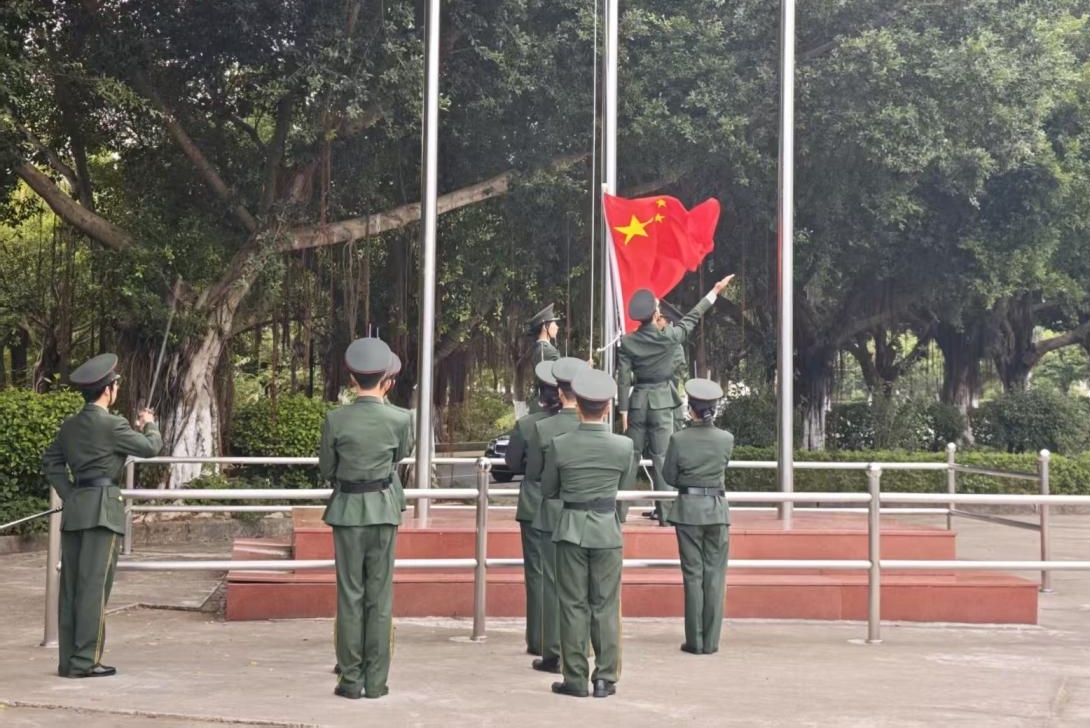 上午7时整,升旗仪式正式开始。英姿飒爽的国旗护卫队迈着铿锵有力的步伐,护送鲜艳的五星红旗入场。在雄壮激昂的《义勇军进行曲》中,全体师生肃立行注目礼,注视着五星红旗冉冉升起,迎风飘扬,也为接下来的奋斗征程注入了满满动力。