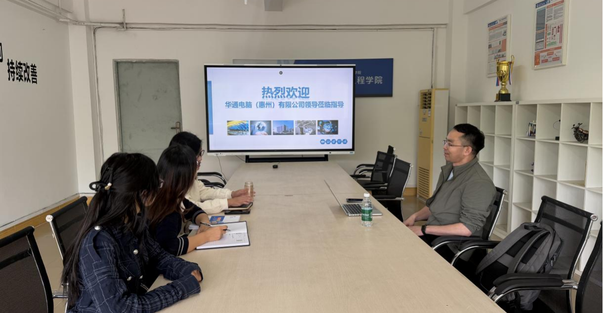 为进一步深化校企合作,拓宽毕业生就业渠道,10月29日下午,华通电脑(惠州)有限公司人事处闵耀虎经理来我院开展校企合作座谈交流。机电工程学院副院长陆蕊、李奕萍及辅导员杨凤妮参加了本次交流活动。