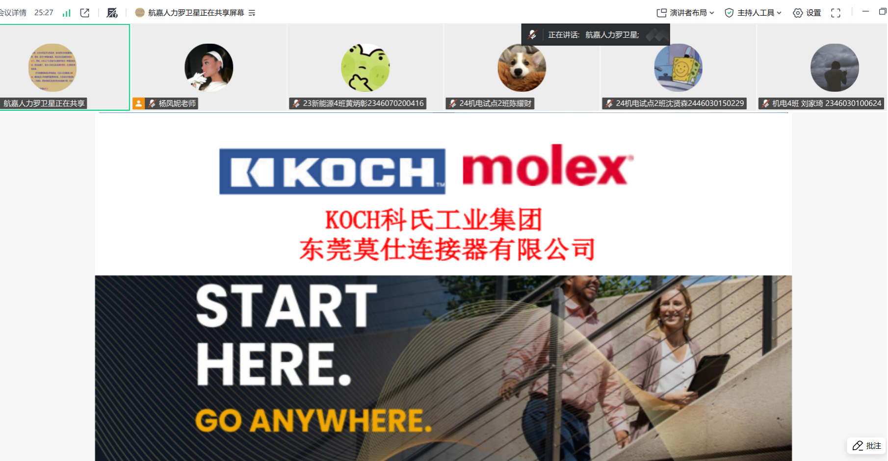 宣讲会上,企业代表通过线上平台详细介绍了莫仕连接器的发展历程、主营业务、核心技术及企业文化,重点阐述了公司在连接器制造与科技创新方面的战略布局。随后,代表结合实际案例,向同学们分享了企业对专科人才的需求标准与成长路径,鼓励毕业生树立正确的就业观念,勇于挑战自我,投身制造业发展。线上宣讲现场气氛热烈,毕业生们通过弹幕和在线提问等方式积极参与互动,就岗位要求、职业发展及企业环境等话题进行了深入交流。