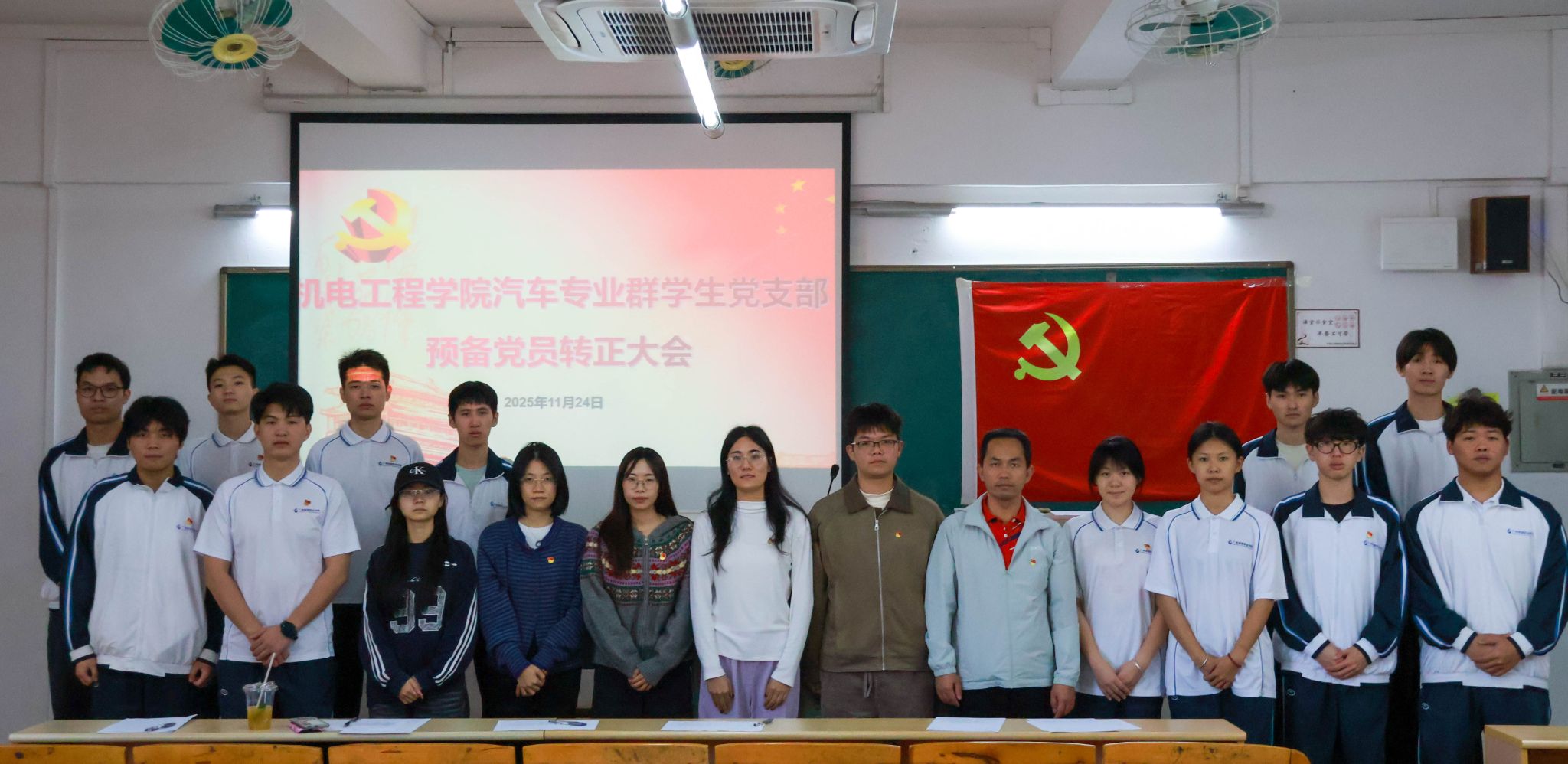 2025年11月24日下午,机电工程学院汽车专业群学生党支部在2426课室召开党员大会,讨论并表决陈烁等6名预备党员的转正事宜。会议由党支部书记陈佩佩主持,支部全体党员参加。