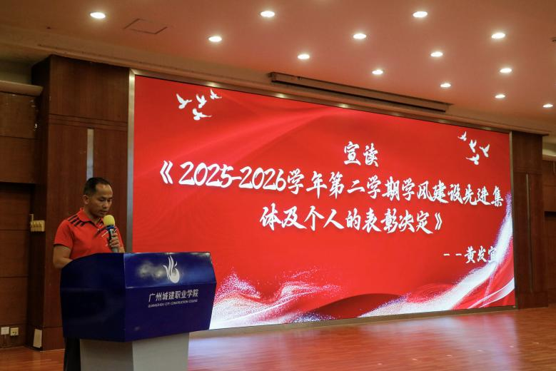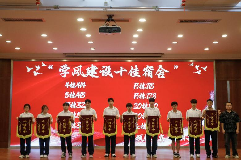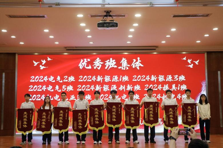 在分享环节中,广东省职业技能竞赛一等奖代表吴宏泽同学结合备赛与参赛经历,分享了以赛促学、以练促能的成长心得,鼓励同学们主动投身专业实践,在技能比拼中锤炼本领;先进班集体代表李俊毅同学围绕班级建设,分享了班级在学风管理、互助学习、班级文化打造等方面的实践经验,展现了团结奋进、勤学向上的班级风貌;学风建设十佳宿舍代表黄欣桂同学从宿舍学风建设切入,分享了宿舍成员互帮互助、共同进步的日常,诠释了“小家促大家”的学风建设理念;学风建设先进个人代表梁海润同学分享了个人学习方法与时间管理技巧,号召同学们树立明确目标,以自律自强书写青春华章。