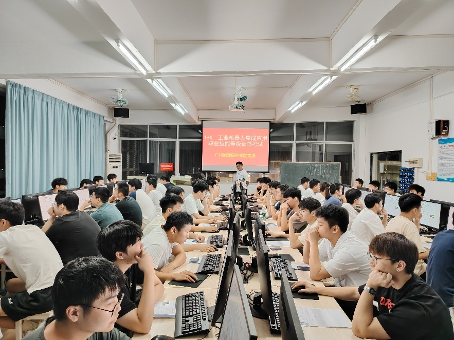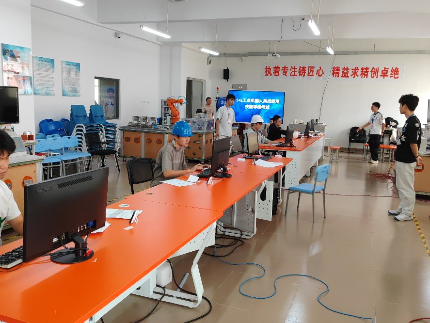 2025年9月26日及10月25日,我院圆满完成“1+X”工业机器人集成应用职业技能等级证书考评工作。本次考评的理论部分在我校建工机电楼3B202A教室进行,实操部分在广东交通职业学院清远校区完成。