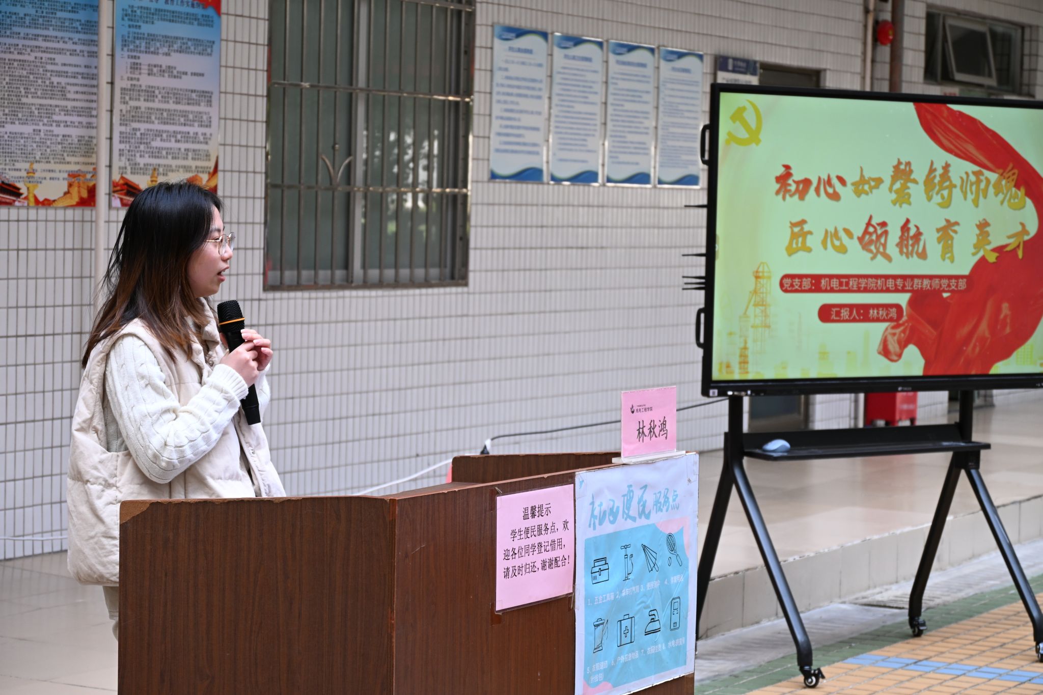 学生党员代表刘俊杰与教师党员代表林秋鸿先后发言。刘俊杰分享了参与帮扶计划的收获与成长,表达了青年学子投身智能制造、助力国家战略的决心;林秋鸿则结合自身教学经验,承诺将以党员先锋模范作用为引领,深耕育人一线,助力学生成长成才。