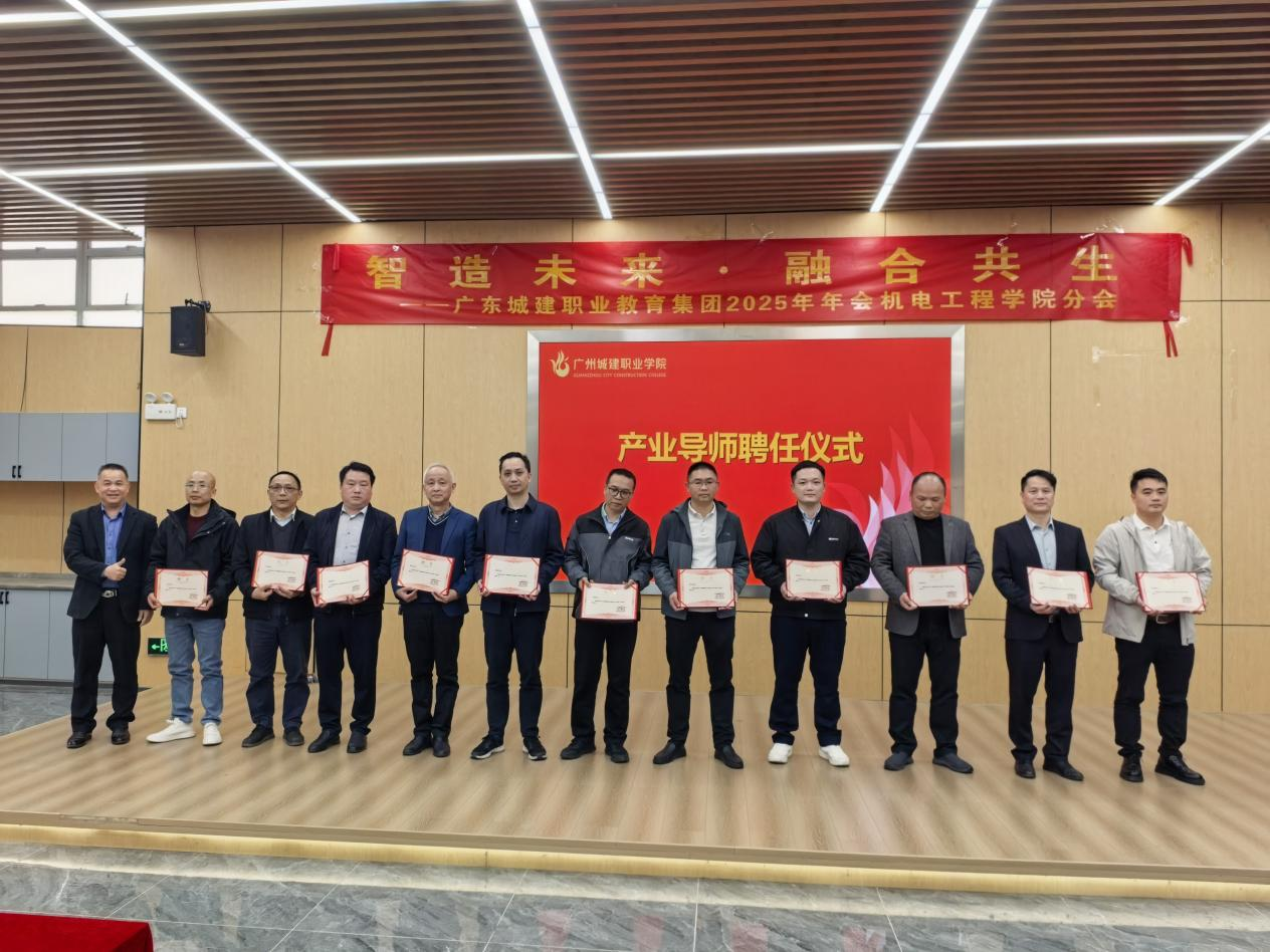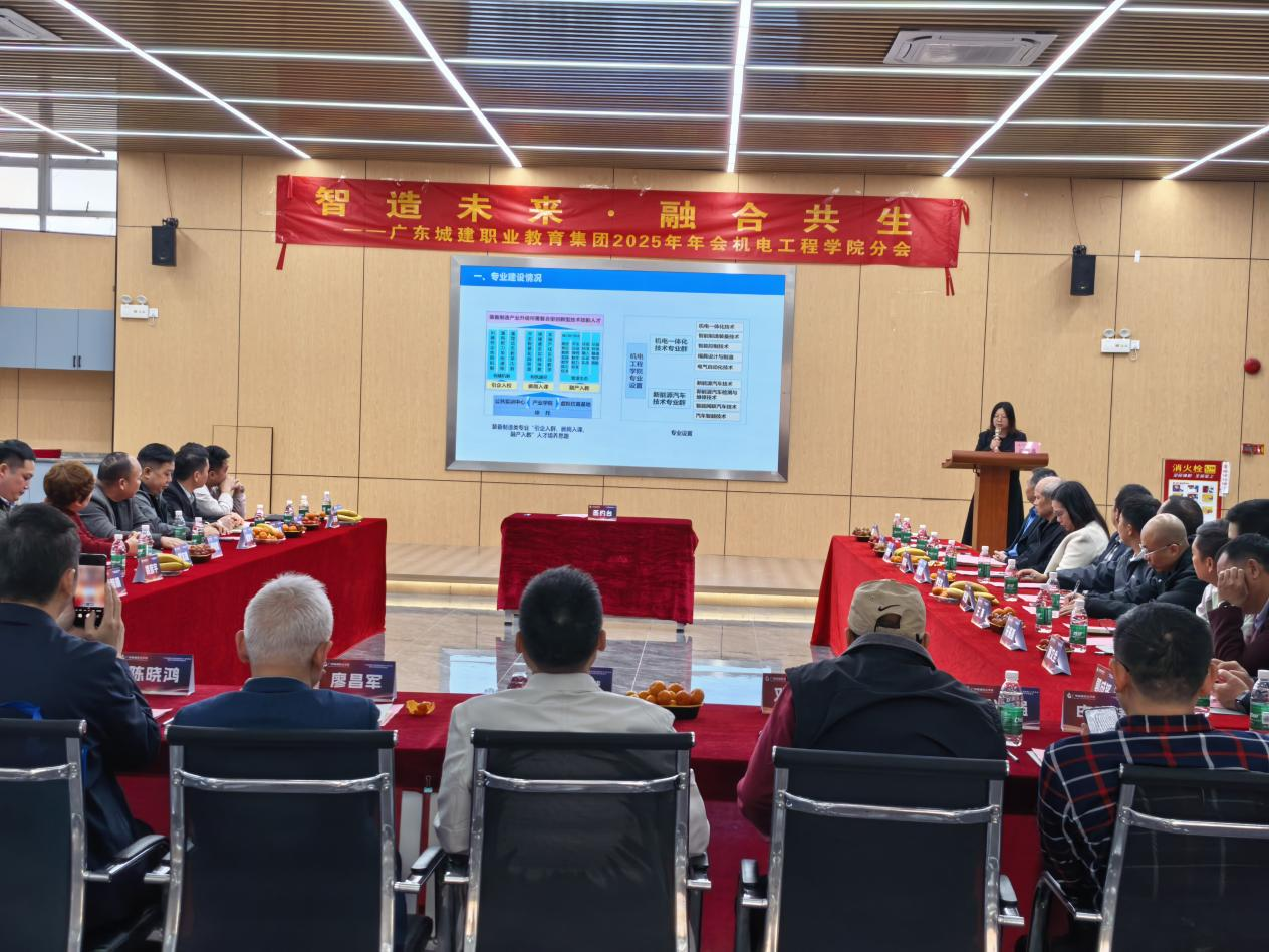 2026年1月15日,冬阳送暖,生机盎然。以“智造未来,融合共生”为主题的广东城建职业教育集团2025年年会机电工程学院分会,在机电工程学院报告厅隆重举行。来自广东磊蒙智能装备集团有限公司、广汽领程新能源商用车有限公司、广东美创希科技有限公司、广东威灵电机制造有限公司等22家智能制造领域标杆企业的50余位高管与技术专家,机电工程学院院长陈友鹏及学院领导班子、教研室主任齐聚一堂,共绘产教融合新蓝图。大会由机电工程学院院长陈友鹏亲自主持。