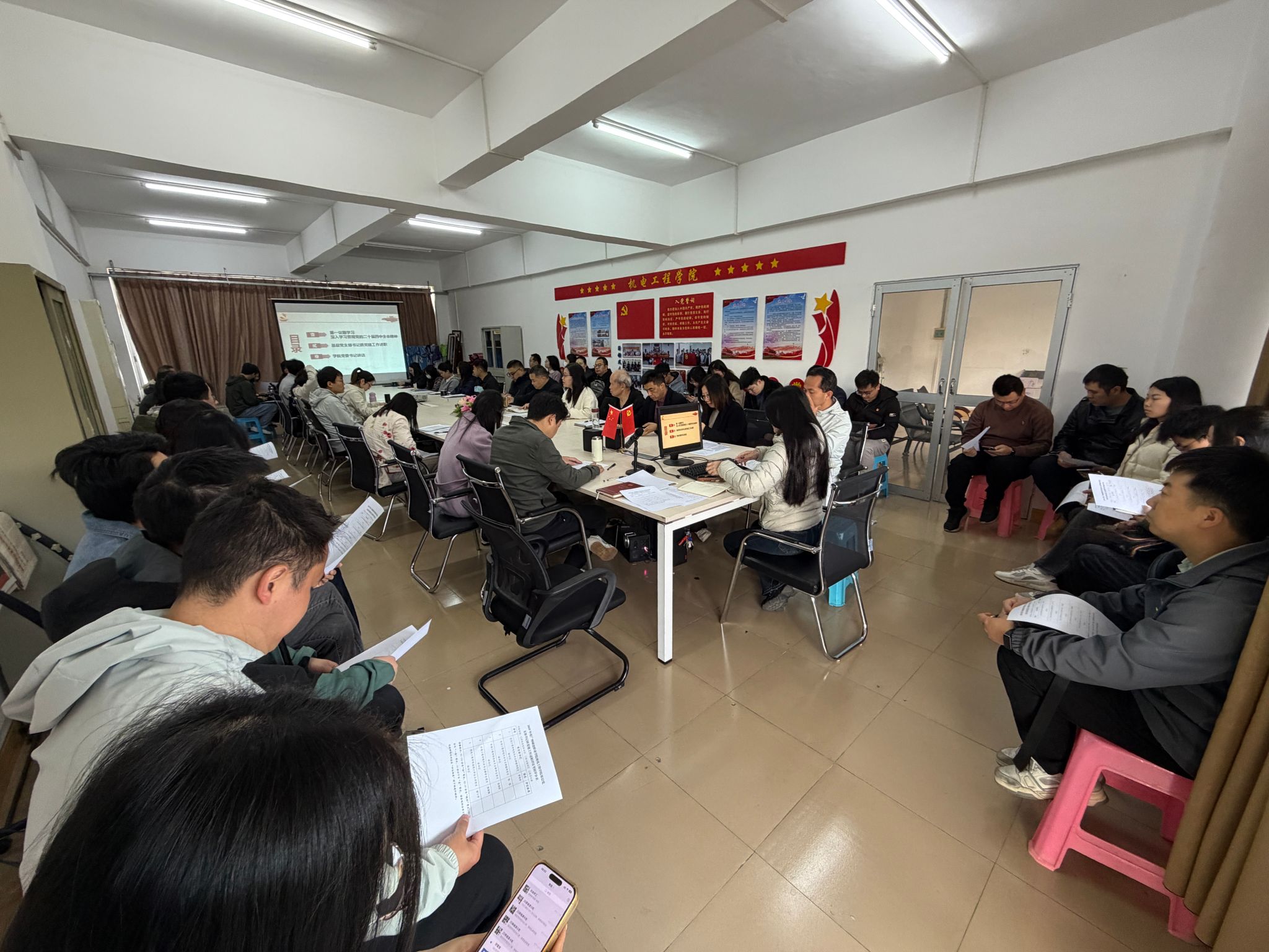 会议伊始,袁燕娇同志带领开展“第一议题”学习,全体党员集中学习党的二十届四中全会相关内容,深入贯彻落实党的二十届四中全会精神。