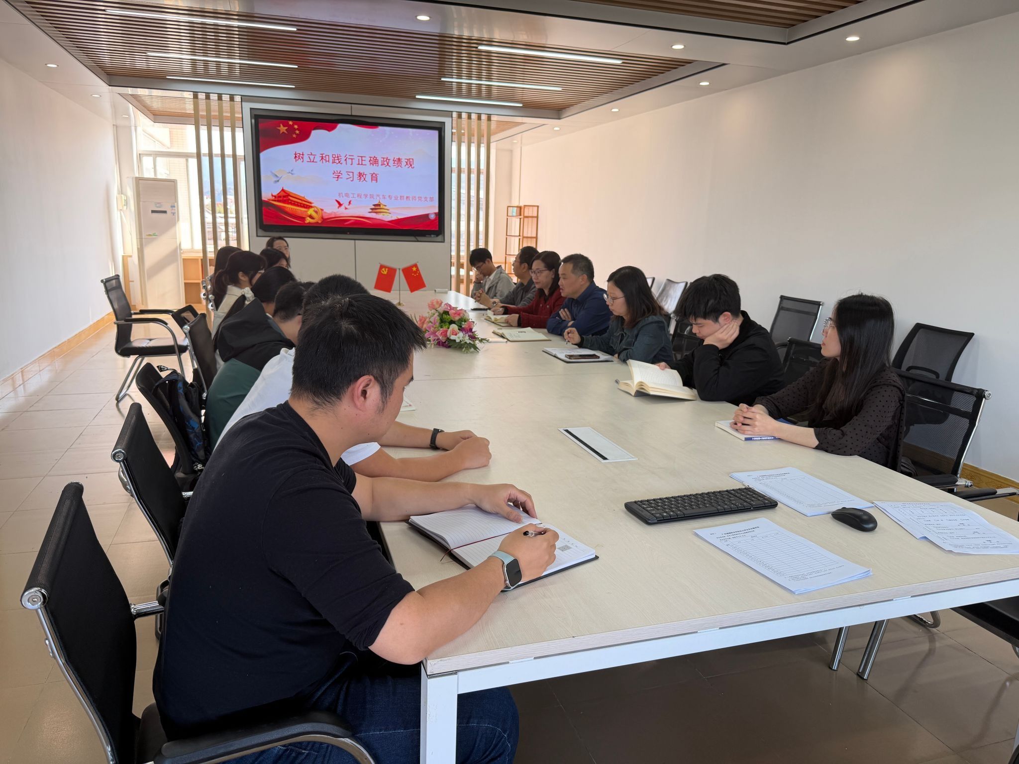 会议强调,学院党委坚持学深悟透、对标查摆、整改提升、推动发展一体推进,确保学习教育高标准、高质量开展。一是强化理论武装,筑牢思想根基。通过党委理论学习中心组学习、党支部“三会一课”、主题党日、专题研讨等形式,深刻理解正确政绩观的核心要义、实践要求,引导党员干部摒弃急功近利、表面文章等错误倾向,树立“功成不必在我、功成必定有我”的境界。二是坚持问题导向,深入自查自纠。紧扣学院教学科研、人才培养、管理服务、师德师风等重点工作,聚焦政绩观错位、责任心缺失、工作不实等突出问题,把自己摆进去、把职责摆进去、把工作摆进去,全面梳理短板不足,建立问题清单、责任清单、整改清单。三是聚焦实干实效,推动成果转化。把学习教育与学院中心工作紧密结合,围绕专业建设、课程改革、学生成长、教师发展等办实事、解难题,坚决不做表面文章、不搞花架子,多做打基础、利长远、惠师生的实事,以实干实绩检验学习教育成效。四是健全长效机制,强化常态践行。坚持“当下改”与“长久立”相结合,完善工作考核、日常管理、监督约束等制度,引导党员干部把正确政绩观融入日常、抓在经常,以严实作风推动各项工作提质增效。